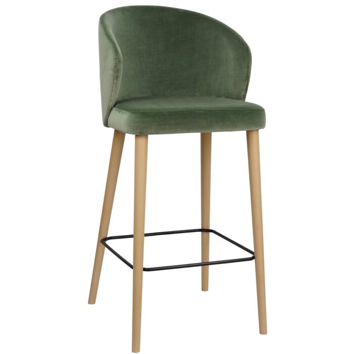 Șezutul și spătarul sunt tapițate într-un material textil plăcut la atingere, într-o nuanță neutră, ușor de integrat în diverse stiluri de amenajare. Structura solidă din lemn asigură stabilitate și durabilitate, iar picioarele ușor conice adaugă un aer elegant și rafinat.