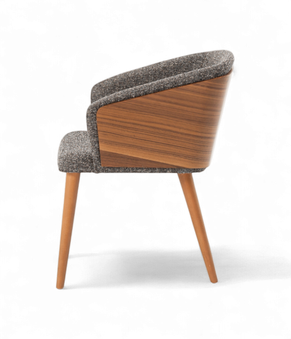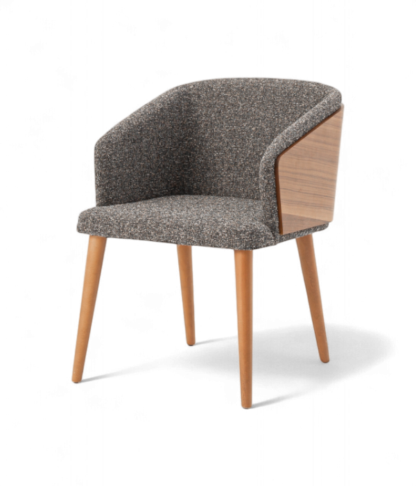 Scaun cu picioare din lemn si spatar atat tapitat cat si placat , potriivit pentru pentru amenajari horeca, office, spatii comerciale sau casa. Sezutul este confectionat din lemn playwood tapitat cu piele sintetica sau textil diferite culori si texturi. Culori lemn: nuc deschis, mediu sau inchis. Pentru extra culori, contactati-ne.